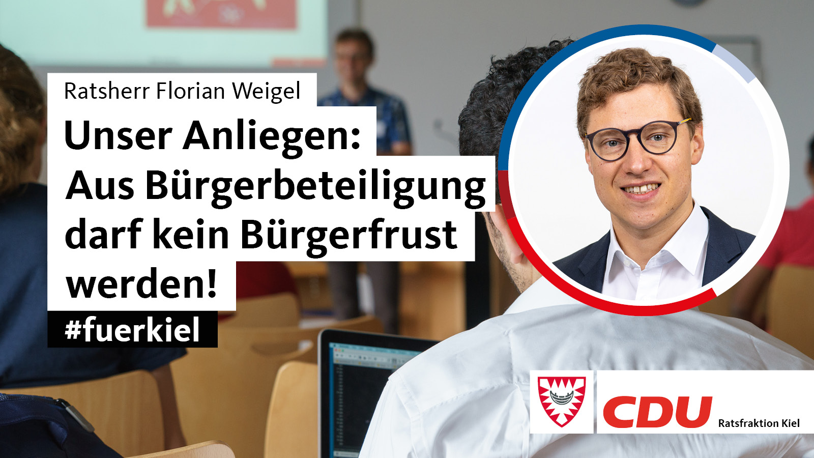 Zur Antwort von Oberbürgermeister Dr. Kämpfer auf die große Anfrage von Ratsherrn Weigel zum Thema „Bürgerbeteiligung“ äußert sich Ratsherr Weigel, stellv. Vorsitzender der CDU-Ratsfraktion, wie folgt: