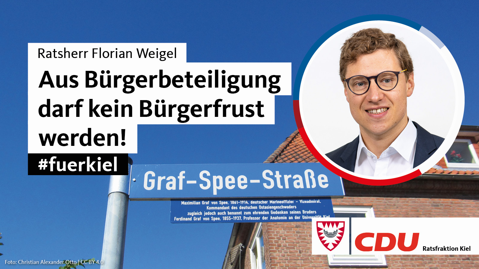 Wie das Verfahren nun gelaufen ist, zeigt leider überaus deutlich, wie problematisch es mit der Bürgerbeteiligung in Kiel ist, so der stellv. Vorsitzende und verkehrspolitische Sprecher der CDU-Ratsfraktion, Ratsherr Florian Weigel.