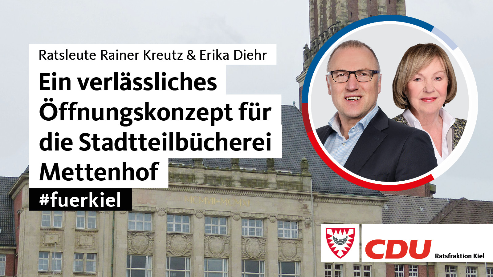 Es ist trotz Personalmangels nicht hinnehmbar, dass es in einem der größten Kieler Stadtteile nur eingeschränkte Öffnungszeiten für die Stadtteilbücherei gibt. Auch wenn es, wie im KN-Artikel vom 23.08.21 zu lesen stand, laut Stadtverwaltung an Fachpersonal mangelt, sollte es doch möglich sein, durch temporäre Personalverschiebungen auskömmliche Öffnungszeiten der Stadtteilbücherei in Mettenhof zu gewährleisten. In Bezug auf Corona gibt es ja inzwischen bewährte Hygienekonzepte, die eine Öffnung ermöglichen. Insbesondere in Zeiten, in denen es durch „Homeschooling“ zu Lernbeeinträchtigungen gekommen ist, ist es besonders wichtig, dass Schülerinnen und Schüler jede Chance erhalten, um auf Bildungsmöglichkeiten zugreifen zu können. Neben den über 85.000 Ausleihen pro Jahr sind alleine auch die multifunktionalen Nutzungsmöglichkeiten der Büchereiräume schon Grund genug, um die Stadtteilbücherei zu öffnen, so der Fraktionsvorsitzende Rainer Kreutz und Ratsfrau Erika Diehr, die Kulturpolitische Sprecherin der CDU-Ratsfraktion Kiel, abschließend.