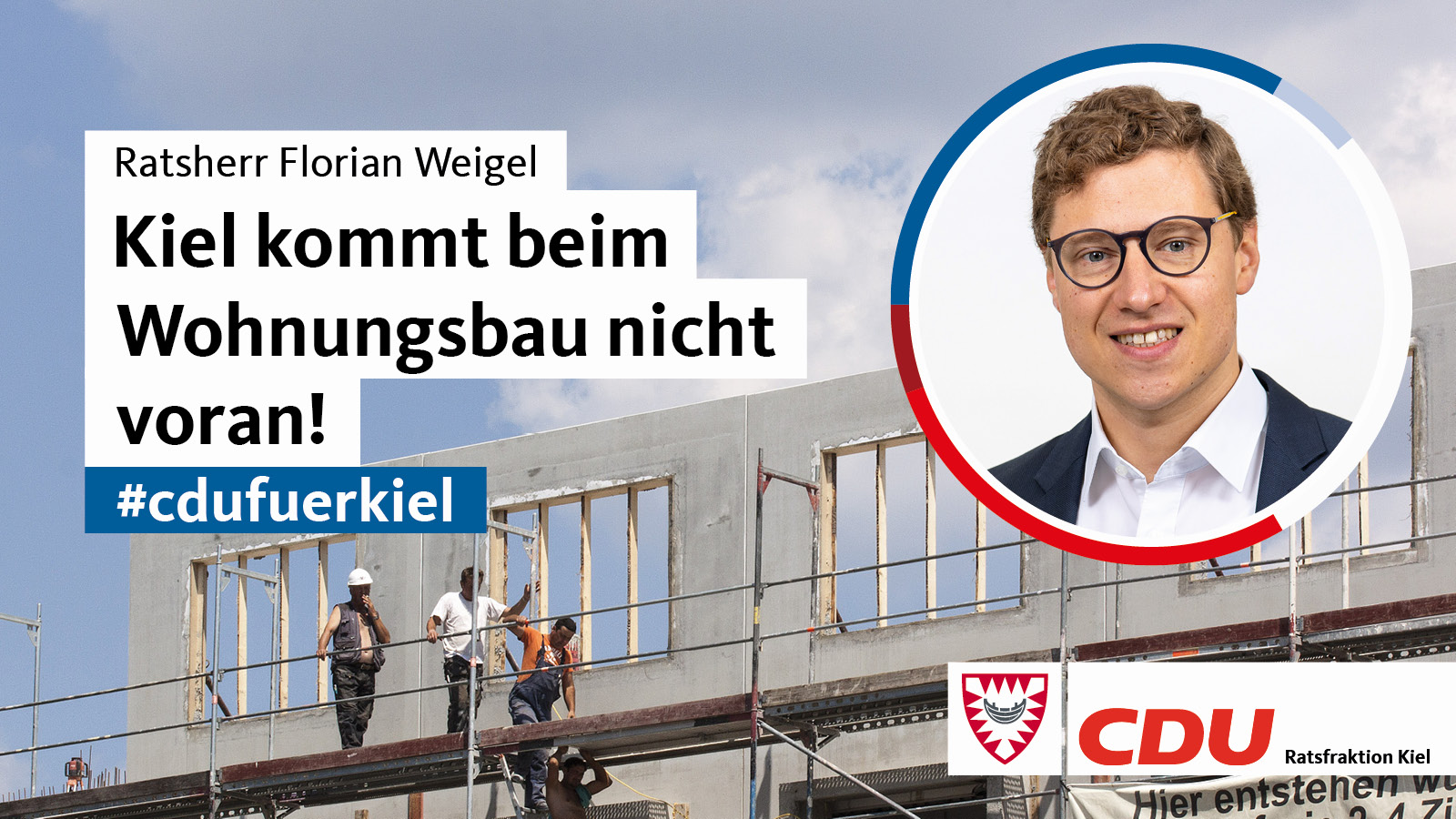 Kiel kommt beim Wohnungsbau nicht voran, so der stellv. Vorsitzende und wohnungspolitische Sprecher der CDU-Ratsfraktion, Ratsherr Florian Weigel.