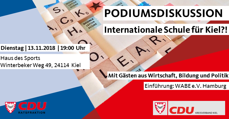 Im Mai 2017 hatte die CDU-Ratsfraktion auf Grund ihrer Idee, in Kiel eine Internationale Schule aufzubauen, einen entsprechenden Prüfantrag im Rat gestellt, der nach diversen Zurückstellungen endlich im Januar 2018 beschlossen worden war.